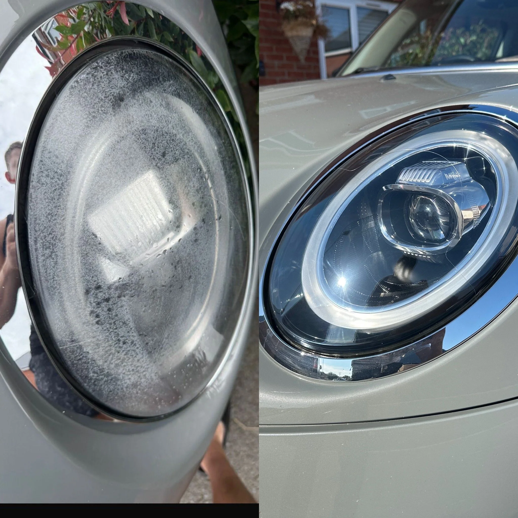 Over time, the suns UV rays can regrade the lenses of your headlights, affecting visibility and can lead to MOT failure. By sanding the old coating off and then clear-coating, not only brings back the Crystal clear lenses, but adds the UV protection back keeping you safe on the road for years more to come.